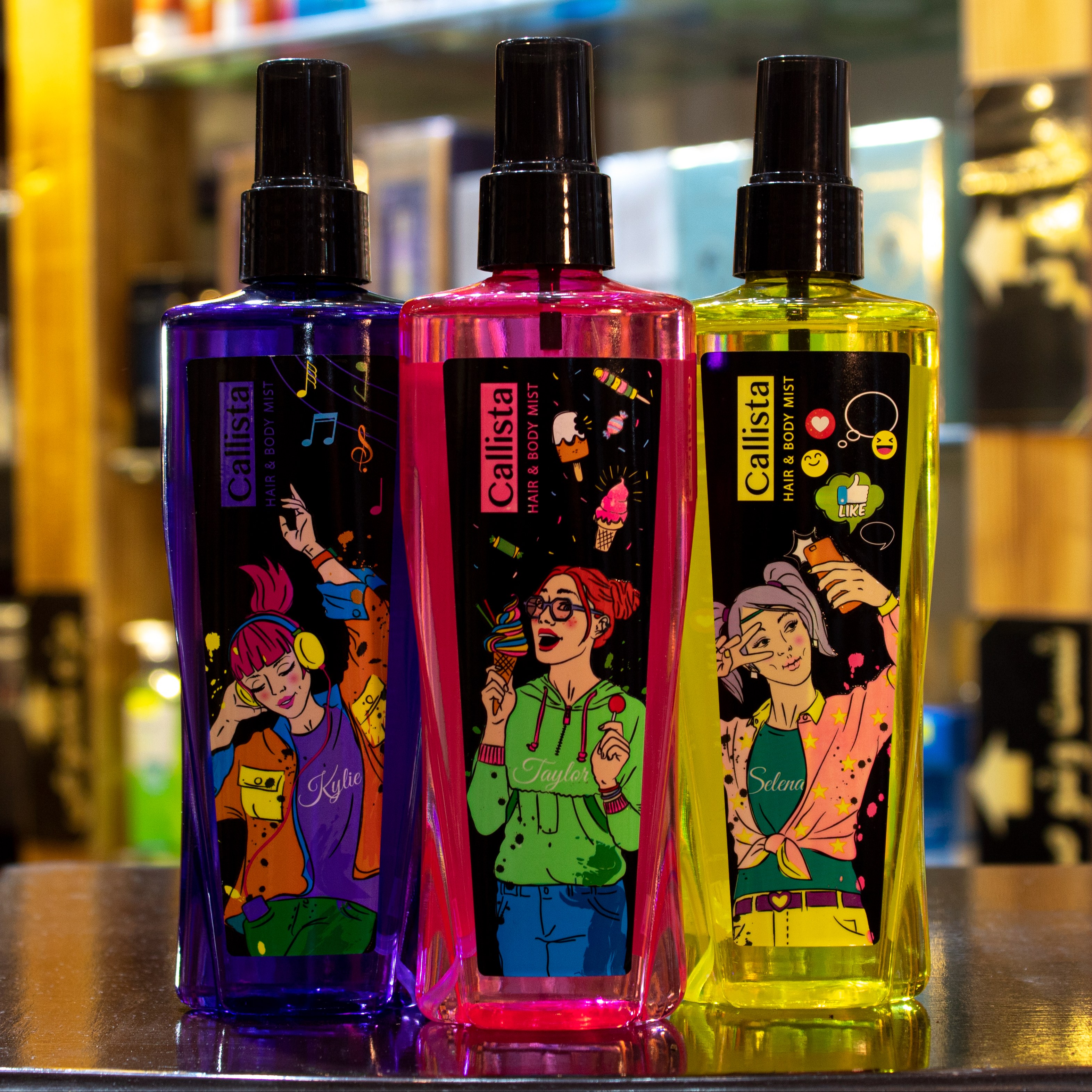 رنگ صورتی : بادی اسپلشها به دلیل مرطوب، نرم و درخشان کردن پوست در کنار رایحهای فوقالعاده از محبوبیت بسیاری زیادی برخوردار هستند. بادی اسپلش تیلور صورتی کالیستا (Taylor Body Splash) رایحهای گلی و مشکی دارد و دختری شاد و پر انرژی را که عاشق لذتهای ساده زندگی است، در یک نگاه ترسیم میکند. تیلور با نتهای گرم و شیرین، شادی را معنا کرده و شما را مهمان یک جشن پر از لذت زندگی میکند. این بادی اسپلش با رایحه خود شما را در معرض توجه جمع قرار داده و انرژی شما را در محیط ماندگار میکند. حجم این بادی اسپلش 200 میلی لیتر است...رنگ بنفش : بادی اسپلشها با رایحه منحصر به فرد خود حس جوانی را همراه شما کرده و پوست شما را مرطوب میکنند. بادی اسپلش کایلی بنفش کالیستا (Kylie Body Splash) با رایحهای میوهای، گلی و وانیلی تصویری از عشق را تداعی کرده و دلیل رفتار عاشقانه را با نتهای خنک و شیرین و کمی تند به خوبی نشان میدهد. Kylie دختر جوانی است که آزادی را در موسیقی گرم عشق پیدا کرده و با ضربان آن زندگی میکند. حجم این بادی اسپلش 200 میلی لیتر است....