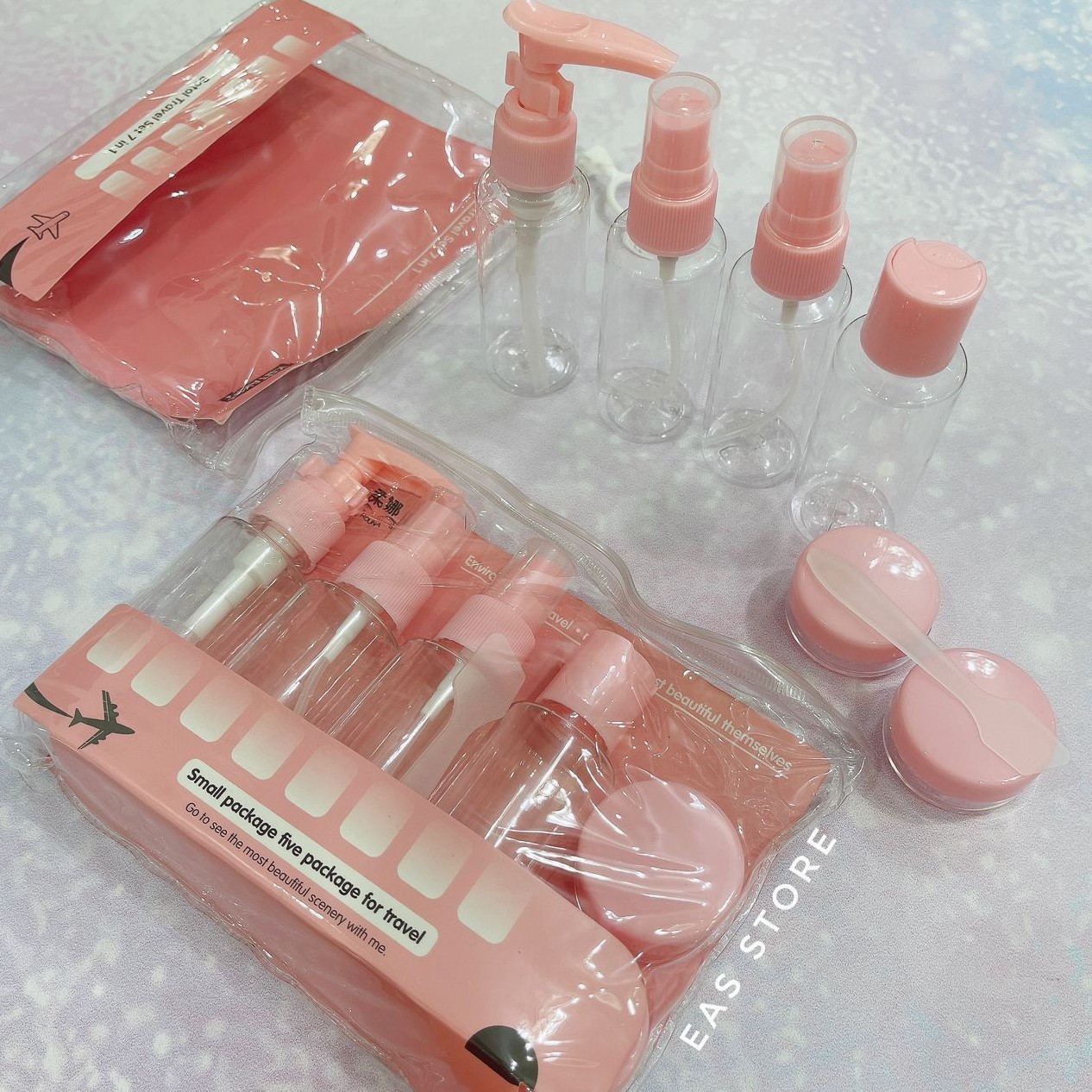 وزن خالص: 200 گرم پک مسافرتی 7 تکه شامل 2 عدد اسپری، 2 عدد بطری، 2 عدد ظرف در دار کوچک و یک کاردک برای نگهداری مواد آرایشی از جمله کرم پودر و انواع شستشو دهنده پوست و مو موجود در ، رنگ صورتی 7تکه، سبک و قابل حمل جنس: پلاستیکی به همراه کیف پلاستیکی